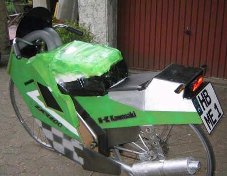 Een enthousiaste duitser heeft zelf deze racefiets gebouwd. Haha, goed...