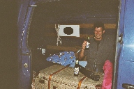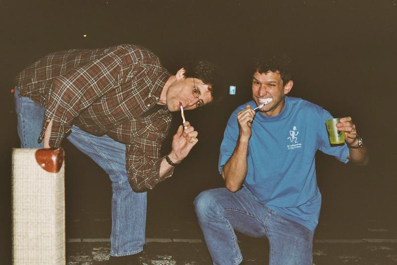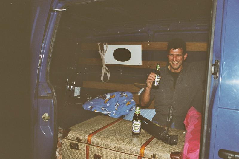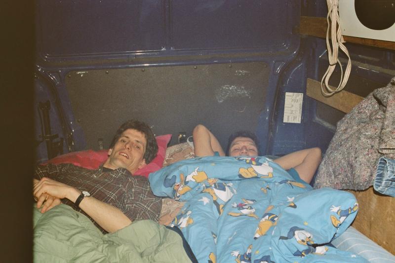 Overnachting van zwagers Bert-Jan en Roland na een afscheidsfeestje 10-4-2004